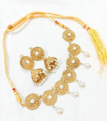 Add timeless elegance to your look with this Gold Plated Pearl Choker & Earrings Set, specially designed for brides and party wear. Featuring a luxurious gold-plated finish with delicate pearl detailing, this jewelry set enhances your beauty with a classic and sophisticated touch.